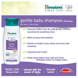 Himalaya Gentle Baby Shampoo is a unique blend of powerful herbs and natural ingredients like Hibiscus, Khus Grass, Chickpea, and Paddy. It helps strengthen the baby’s delicate hair and protects the sensitive scalp skin. It is specially formulated to cause no eye irritation and provide deep nourishment while cleansing the baby’s hair.